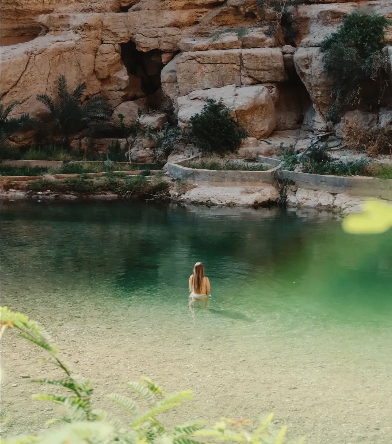 As you make your way through the wadi, you will be surrounded by towering canyon walls, sculpted by water over thousands of years. The sound of rushing water echoes around you. Sunlight filters through the narrow gorge, illuminating the emerald pools below. It is raw, beautiful, and alive.