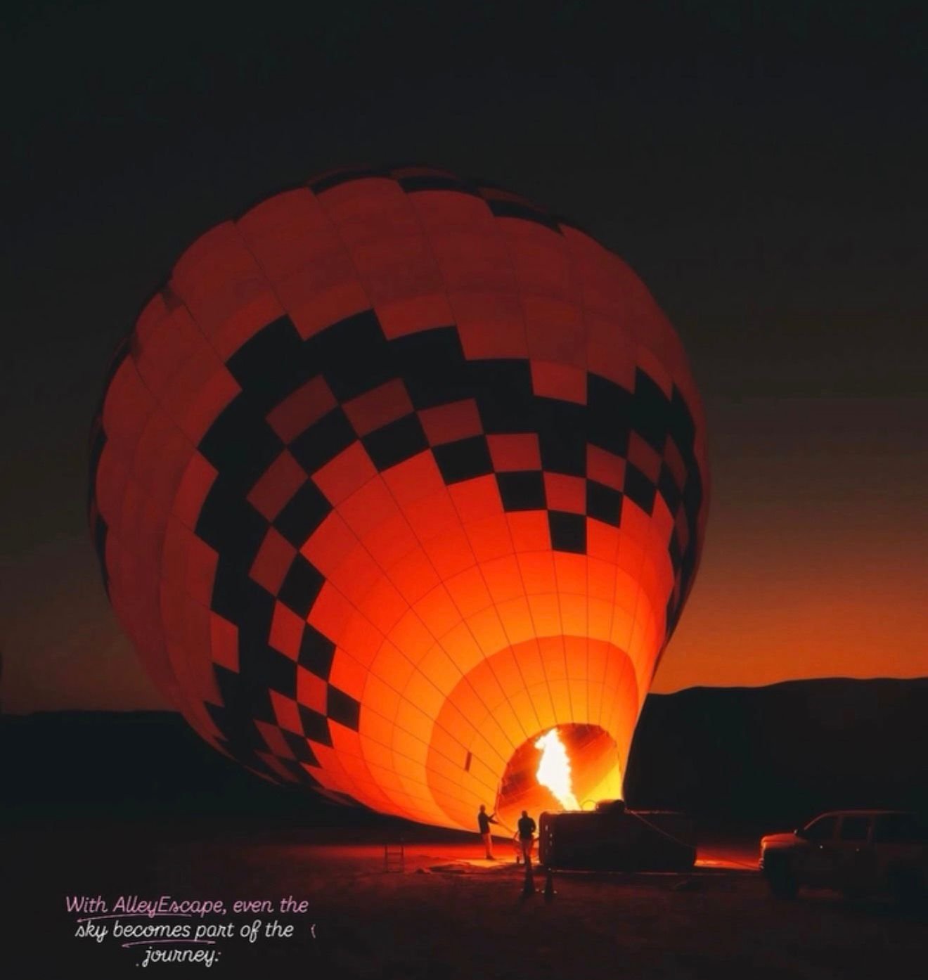 After breakfast at your desert camp in Wahiba Sands, an extraordinary experience awaits. You will embark on a hot air balloon ride over the vast golden dunes — a once-in-a-lifetime opportunity to see the desert from above. As the sun rises, the balloon gently lifts off, carrying you into the silent morning sky. From this unique vantage point, you will watch the endless waves of sand stretch to the horizon, painted in soft shades of amber and gold. The shadows of the dunes shift beneath you, creating patterns that change with every moment. It is a peaceful, magical, and unforgettable way to say goodbye to the desert.